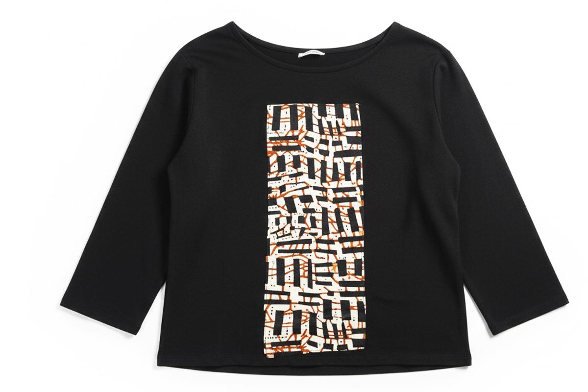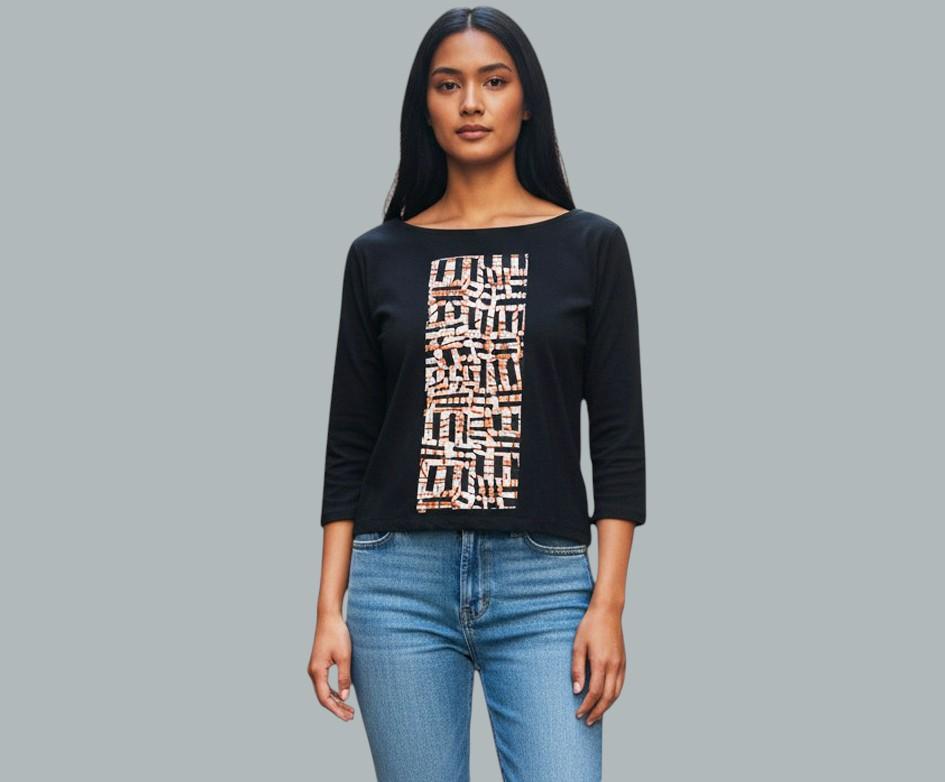 Camiseta viscosa  negra con tela Africana