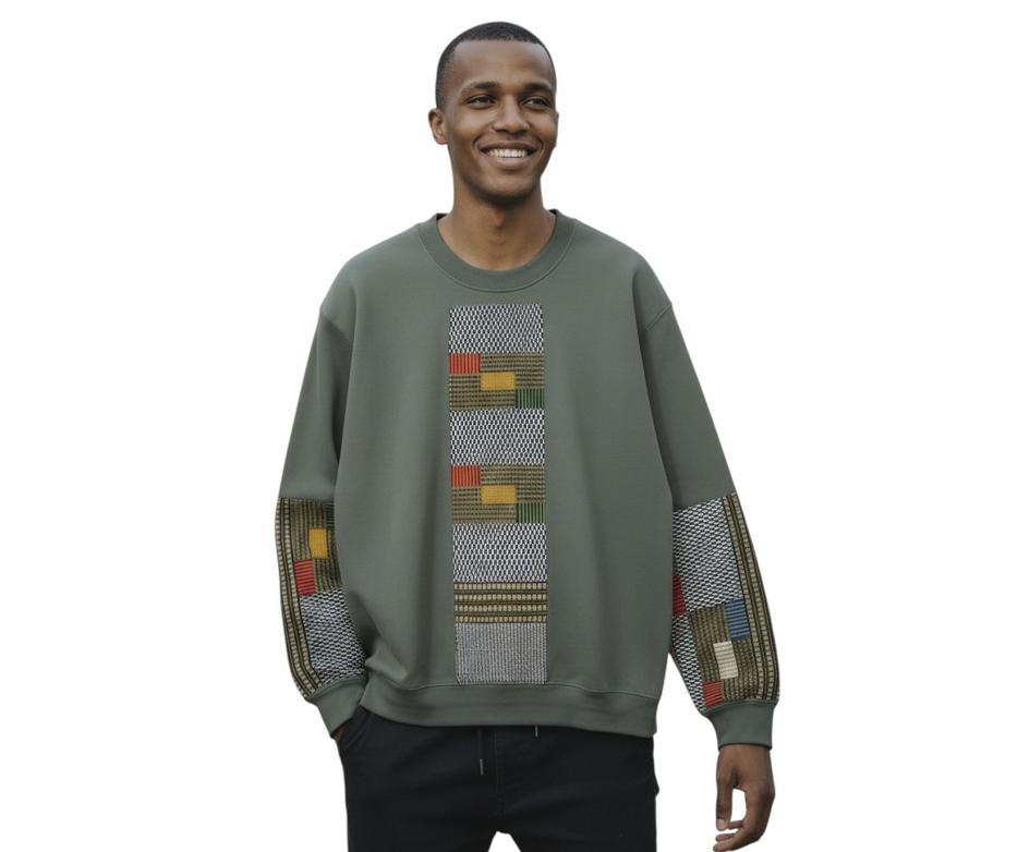 Sudadera con aplicacion de tela wax africana